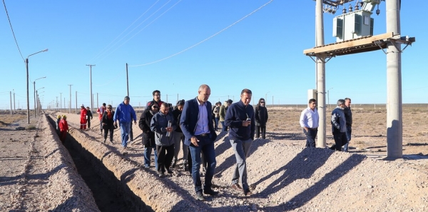 En compañía del intendente Esteban Cimolai, el mandatario provincial visitó el predio donde se asentarán próximamente las viviendas y donde actualmente se realizan distintas obras de infraestructura social básica para este nuevo centro urbano de Centenario.