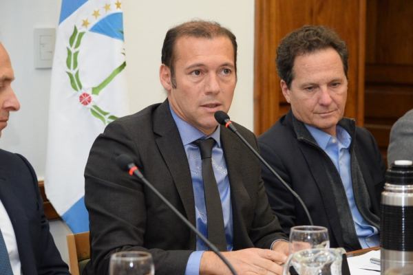 El intendente RIOSECO expreso este acuerdo que hoy dejamos oficializado tiene eslabones fundamentales en primer lugar agradecerle al Sr Gobernador, la decisión política en acompañar a estas dos comunidades, agradecer el trabajo de ambos concejos deliberantes que han tenido la capacidad de plasmar este acuerdo con una mirada hacia el futuro sin banderías políticas, y decirle a mis vecinos que hoy hemos gestado la mejor oferta de futuro para nuestros habitantes, que es la fuente laboral por 35 años.