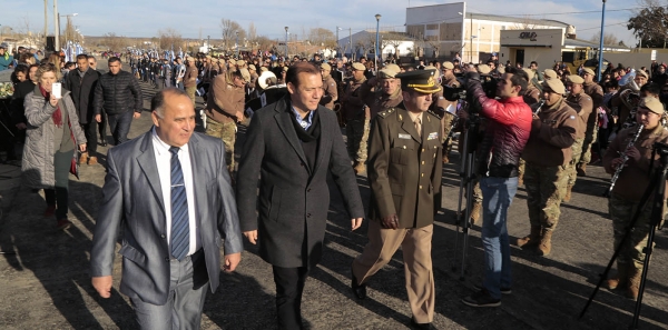 El gobernador Omar Gutiérrez presidió ayer por la tarde los festejos por el 67º aniversario de Senillosa. Estuvo acompañado por el intendente de la localidad, Hugo Moenne.