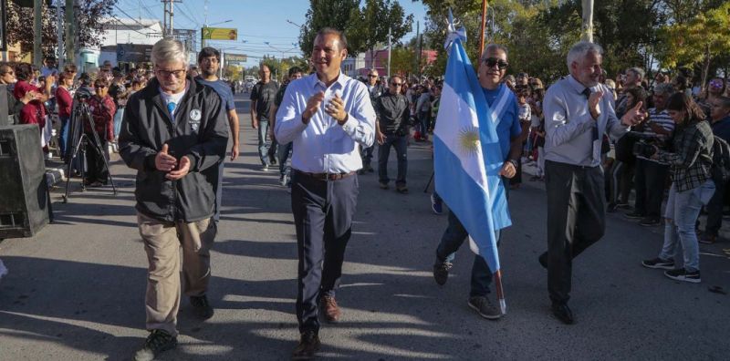 El gobernador Omar Gutiérrez encabezó ayer por la tarde los actos por el 84º aniversario de la ciudad de Plottier, acompañado por el intendente Andrés Peressini.