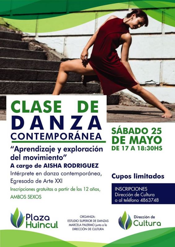 Se trata de Clases de Danza Contemporánea, una propuesta desarrollada en conjunto con el Estudio Superior de Danzas Marcela Palermo, que estará a cargo de la Profesora Aisha Rodriguez.