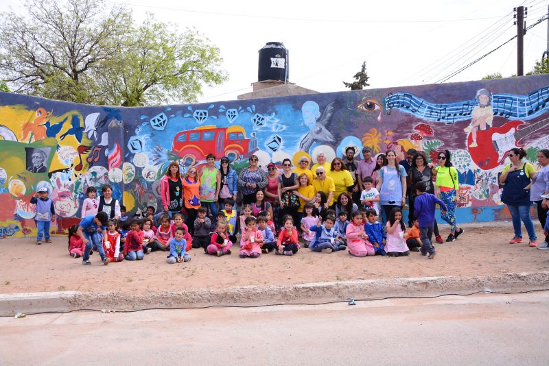 El Subsecretario de Cultura, Daniel Faúndez participóo de la muraleada que fue realizada por las salitas de 4 y 5 años del jardín 15 en articulación con la Subsecretaria de Cultura de la municipalidad de Cutral Co. Dicho evento se llevó a cabo en cercanías al establecimiento escolar y tuvo como objetivo plantear la no violencia y la niñez haciendo alusión a los hechos ocurridos en el barrio Peñi Trapun.