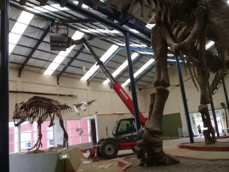 Se reemplazaron luminarias viejas por luces led, tanto en el interior como en el exterior; cielos raso en el hall de entrada, en baños, salón de paleontología.