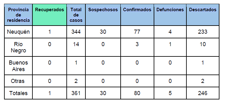 Tiempo de lectura: 8 segundosSe informó el primer caso recuperado de Coronavirus (COVID-19) de la provincia del Neuquén. Es un hombre de 64 años, oriundo de Neuquén capital, que tenía antecedente de viaje a España.