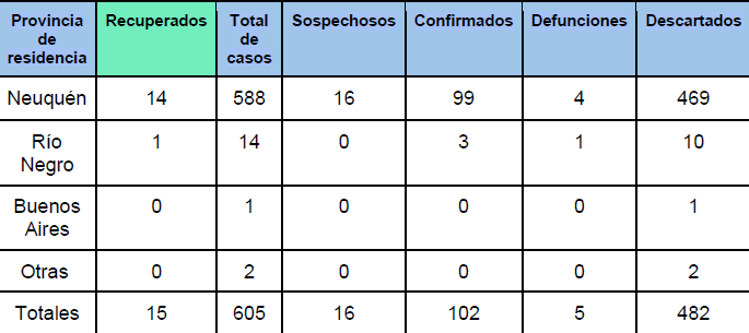 Tiempo de lectura: 6 segundosAl momento de este reporte, se notificaron diez nuevos casos sospechosos de Coronavirus (Covid-19) de la provincia del Neuquén. No se confirmaron nuevos casos.