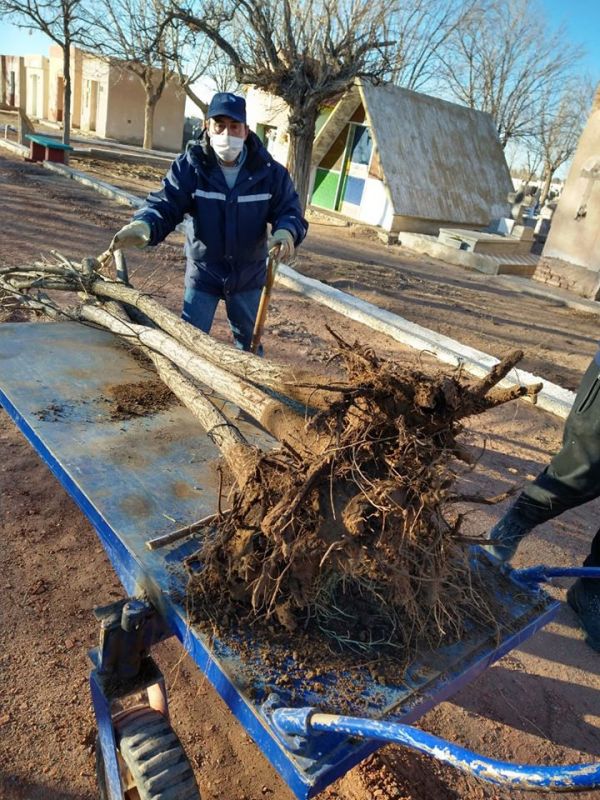 Desde que comenzó la cuarentena y con los cuidados necesarios se realizaron trabajos de poda y desmalezamiento en todo el predio; por el momento se trabaja en forma conjunta con la Dirección de Espacios Verdes, quien colaboró con la entrega de 60 árboles entre acacia bola y ciruelo de jardín, para reponer los árboles secos que retiraron del predio.