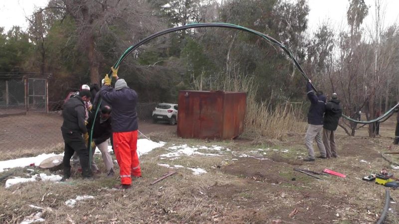 Se trata de una bomba sumergible que trabaja a unos 40 metros de profundidad, las conexiones existentes están en buen estado por lo que el personal la próxima semana comenzará a trabajar en el invernadero y la obra de gas para el mismo.