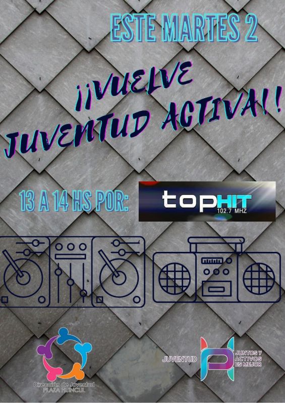 La Dirección de Juventud de Plaza Huincul inicia un nuevo ciclo de "Juventud Activa" un programa radial de interés general que se emitirá los martes a partir de las 13 horas por FM Top Hit 102.7Mhz.