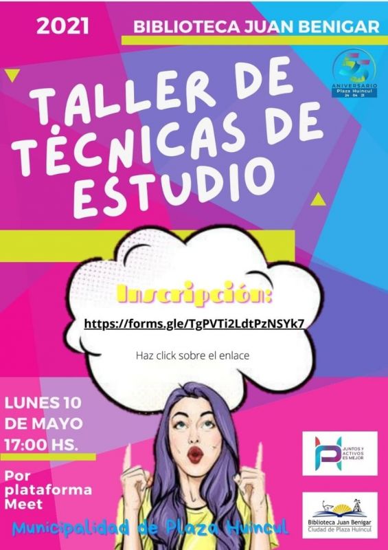 Por otra parte, se llevará a cabo un taller de Técnicas de Estudio que se dictará por la plataforma Google Meet y será con inscripción previa en la página oficial de Facebook de la Municipalidad o en el link: https://docs.google.com/.../1FAIpQLSf.../viewform