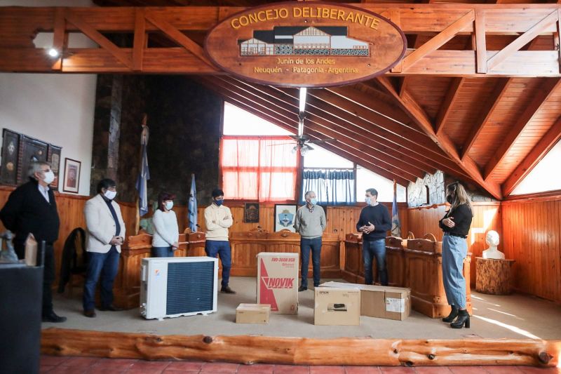 Posteriormente Koopmann se reunió con integrantes del Concejo Deliberante de Junín, donde conversaron sobre las obras y proyectos que se están llevando adelante en la localidad; como así también sobre las políticas con perspectiva de género sobre las que están trabajando actualmente. Participaron del encuentro las concejalas Maximiliana Gonzalez y Laura Riffo, y sus pares del bloque Carlos Quintulen y Miguel Ledesma. Allí el mandatario provincial realizó la entrega de diversos elementos tecnológicos que servirán para poder modernizar el funcionamiento del Concejo y al mismo tiempo, agilizar los procesos de trabajo.