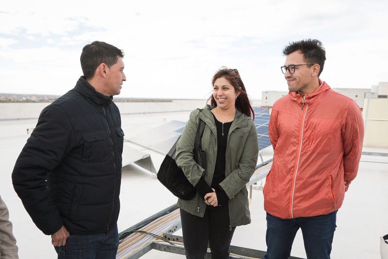 Estudiantes de la Facultad de Ingeniería de la UNCo recorrieron hoy la terraza de la Legislatura donde se encuentran instalados los 204 paneles solares que desde la semana pasada producen el 10% de la energía consumida en el edificio, permitiendo ahorrar unos 3 millones de pesos anuales.