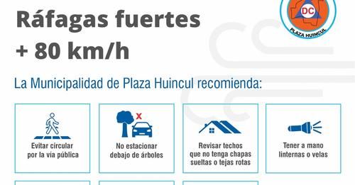 La Municipalidad de Plaza Huincul ante el temporal de viento previsto para este miércoles suspende las actividades de la administración pública municipal, garantizando servicios esenciales y guardias activas.