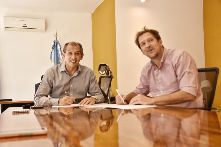 El Intendente Municipal, Gustavo Suárez recibió al Ministro de Producción e Industria, Facundo López Raggi para concretar la firma del convenio que prevé la financiación de un proyecto productivo en la localidad.