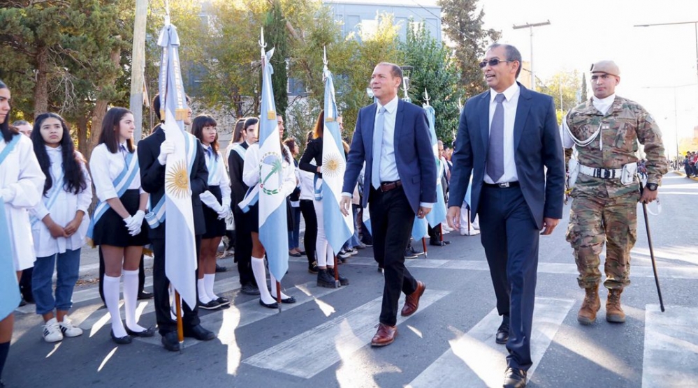 El gobernador Omar Gutiérrez y el intendente de Plaza Huincul Gustavo Suárez encabezaron ayer por la mañana el acto por el 57° aniversario, que se realizó sobre la Av. San Martín de la localidad. Entre otras obras, durante el acto se anunció la construcción de 176 viviendas para la localidad.