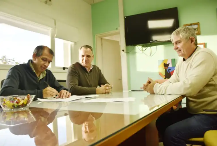 El intendente municipal Gustavo Suárez efectivizó la firma de convenio con la empresa ‘Maderera Raimondi’, a cargo del señor Ramón Javier Raimondi, la cual se hará responsable del recambio del parquet existente en la cancha de básquet del Club Atlético Plaza Huincul, por piso flotante, el cual cumple con las características necesarias para la realización de dicho deporte.