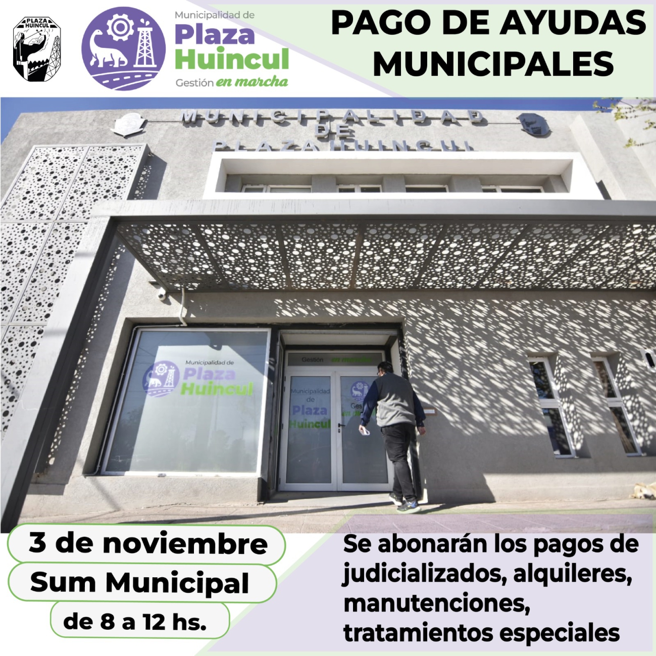 La acreditación de pagos se dará durante la mañana del 3 de noviembre en el sum del edificio municipal.