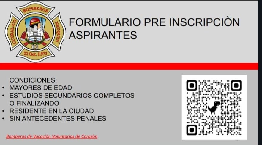 Formulario de preinscripción aspirante a Bomberos Voluntarios Cutral-Có