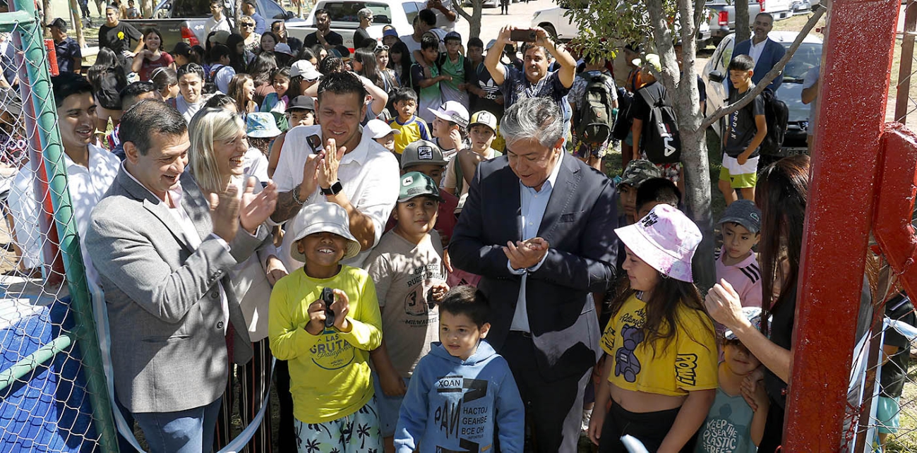 Banderet hizo una mención especial a Norberto Nicanor “Beto” Rojas, agente municipal para quien las autoridades descubrieron una placa homenaje como reconocimiento en vida a su dedicación. Con su nombre se designó a la cancha de fútbol sintético N° 11, ubicada en el predio deportivo municipal. “Realmente ha tenido una vocación de servicio muy importante para la comunidad, para nuestros jóvenes y es importante reconocer a las personas en vida”, aseguró el intendente.