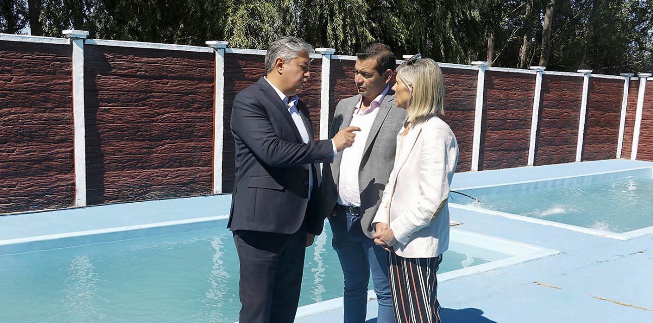 El gobernador Rolando Figueroa participó esta mañana, junto al intendente de Añelo Fernando Banderet, de la inauguración de las tres nuevas piletas de natación de la localidad y del inicio de la colonia de verano.