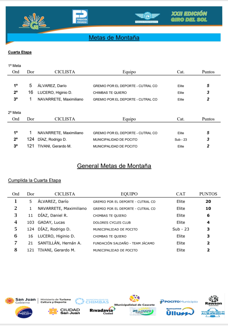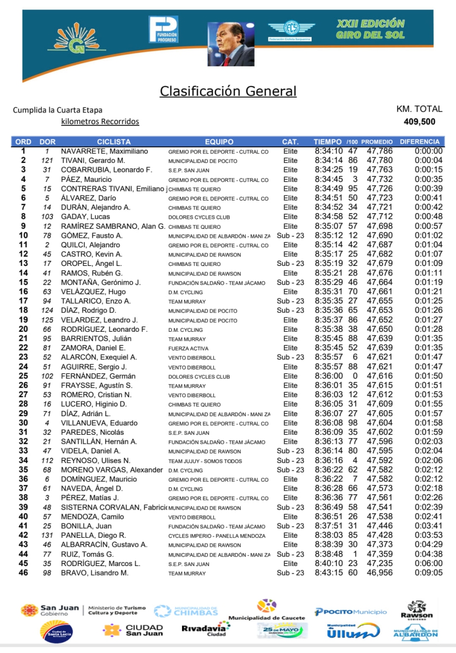 Pese a que la cuarta etapa la ganó Gerardo Tivani, el oriundo de Cutral Co, Maximiliano Navarrete, se queda otra vez con el Giro del Sol. En 2023 también lo gano.