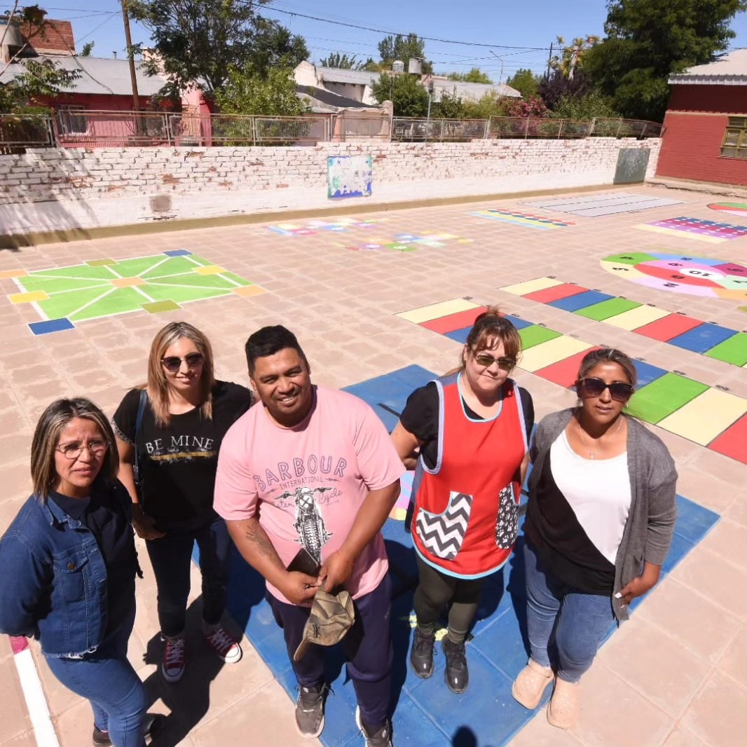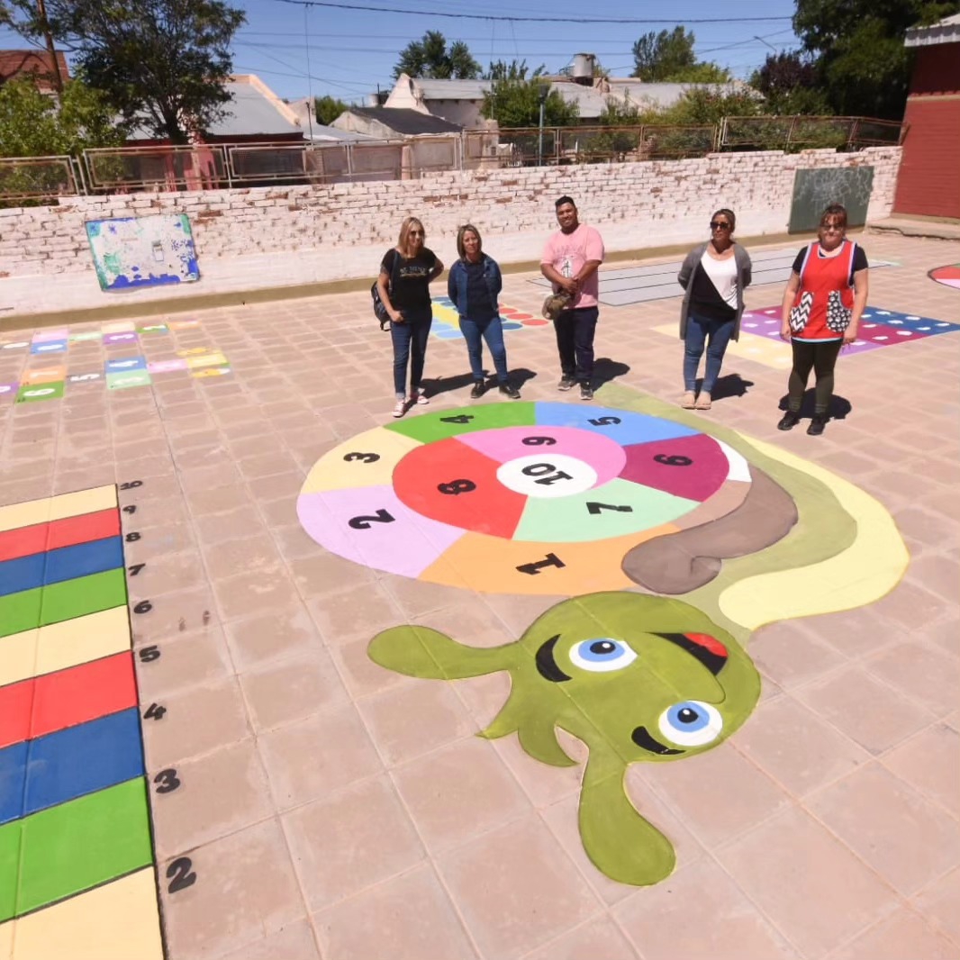 Pintura y diseño de juegos infantiles en el patio del Jardín N°3 de barrio Otaño