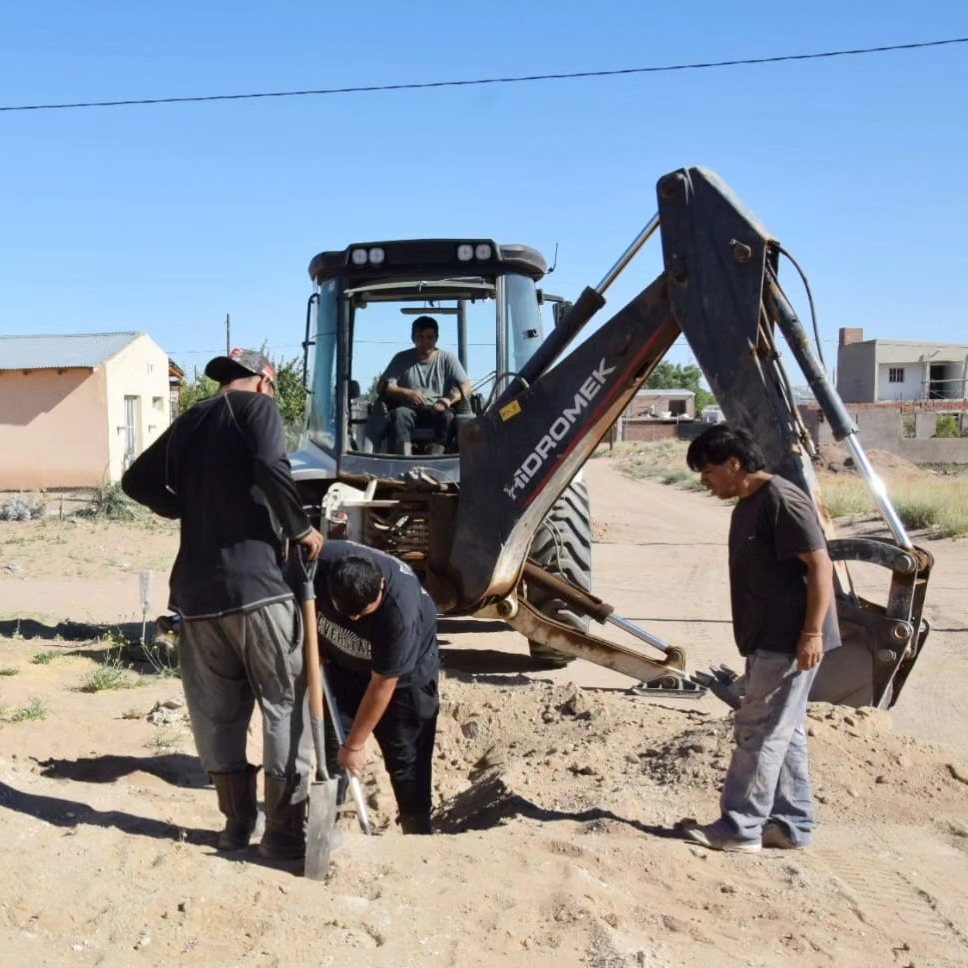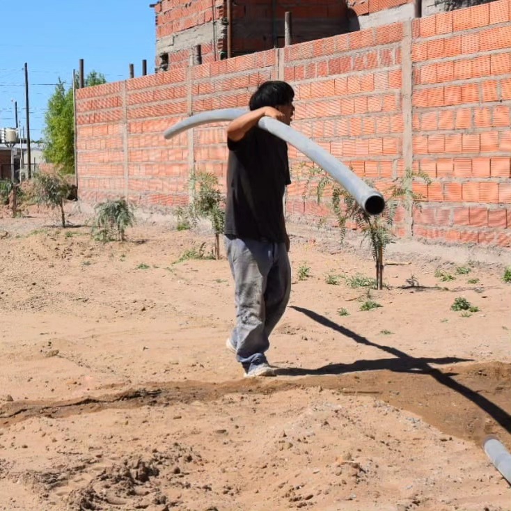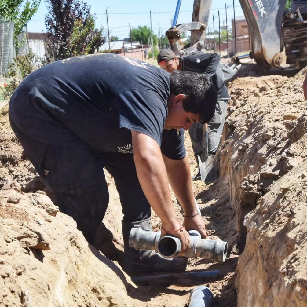 Personal de la secretaría de Obras y Servicios Públicos de la Municipalidad de Plaza Huincul avanza en el tendido de nuevas cañerías en la zona sur de la ciudad