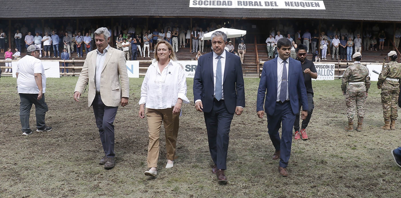 Estuvo acompañado por la presidenta de la Sociedad Rural del Neuquén, Cecilia De Larminat; el presidente de la Sociedad Rural Argentina, Nicolás Pino; el intendente de Junín de los Andes, Luis Madueño; ministros del gabinete provincial; y demás autoridades municipales y provinciales.