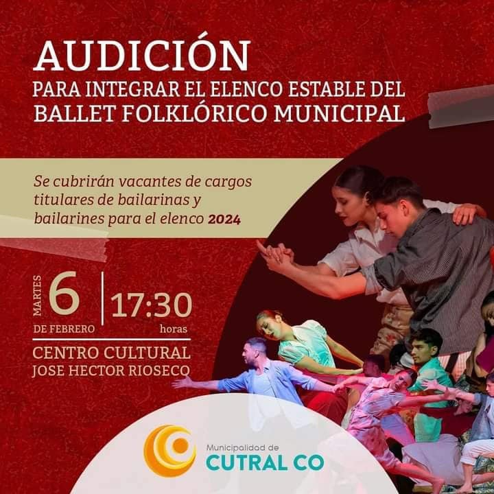 La Municipalidad de Cutral Có, junto con la Subsecretaria de Cultura invitan a una nueva AUDICIÓN del Ballet Municipal de Cutral Có, para su ELENCO 2024
