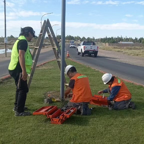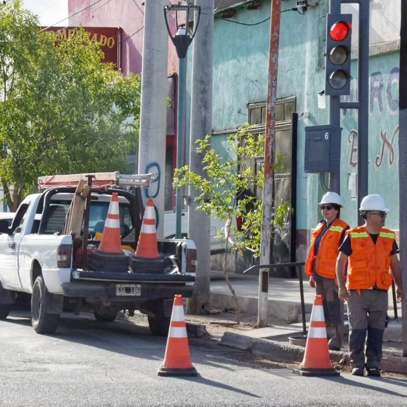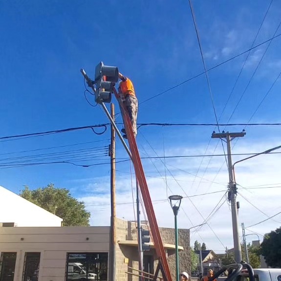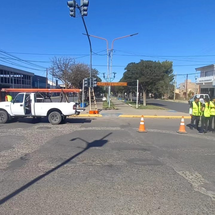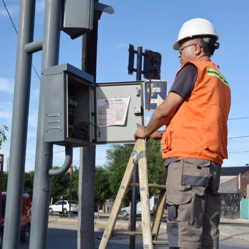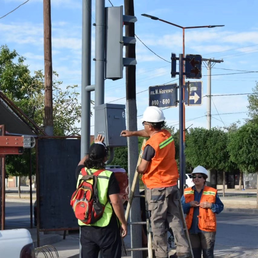 El equipo de la dirección de Logística Urbana, en colaboración con la dirección de Tránsito de la Municipalidad de Plaza Huincul, trabajó en la puesta a punto de los semáforos ubicados en
