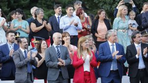En los festejos también estuvieron presentes los ministros Jefe de Gabinete, Juan Luis Ousset, de Gobierno, Jorge Tobares; de Trabajo y Desarrollo Laboral, Lucas Castelli; de Desarrollo Humano, Gobiernos Locales y Mujeres, Julieta Corroza; de Salud, Martín Regueiro; de Seguridad, Matías Nicolini; de Infraestructura, Rubén Etcheverry; y de Turismo, Gustavo Fernández Capiet. También las secretarias de Emergencias y Gestión de Riesgos, Luciana Ortiz Luna; y de Planificación y Vinculación Institucional, Leticia Esteves, entre otras autoridades.