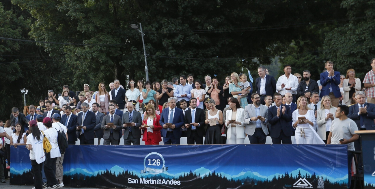 El gobernador Rolando Figueroa encabezó esta tarde-noche los actos por el 126 aniversario de San Martín de los Andes, desde donde hizo un llamamiento a todas las neuquinas y neuquinos a defender la neuquinidad y trabajar sin distinciones políticas. Junto a la vicegobernadora Gloria Ruiz y al intendente Carlos Saloniti recorrieron la localidad, dialogaron con vecinas, vecinos y turistas; y participaron del desfile de organizaciones de la comunidad, .