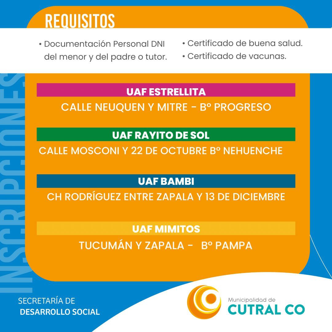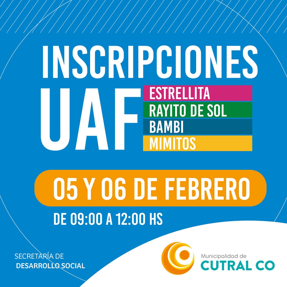 Lunes y martes estarán habilitadas las inscripciones de las Unidades de Acción Familiar "UAF - Bambi - Rayito de Sol y Estrellita" dependientes de la Secretaria de Desarrollo Social.