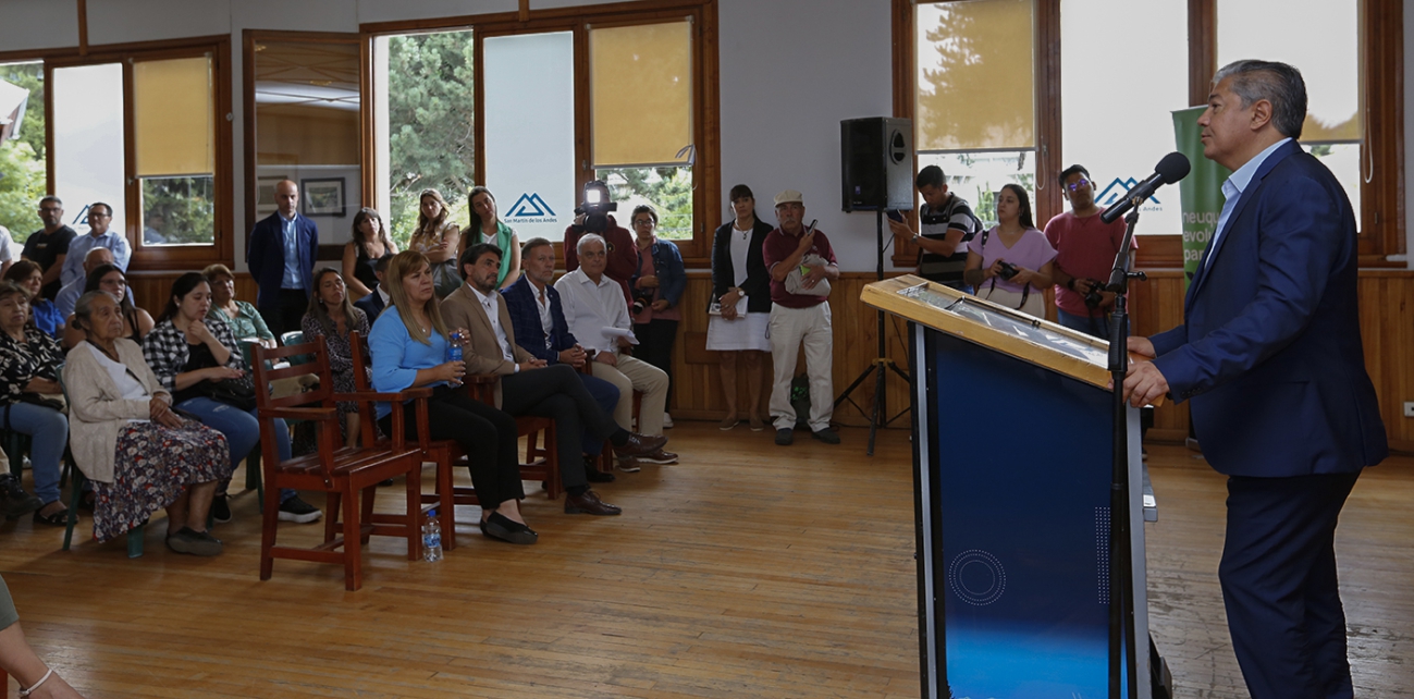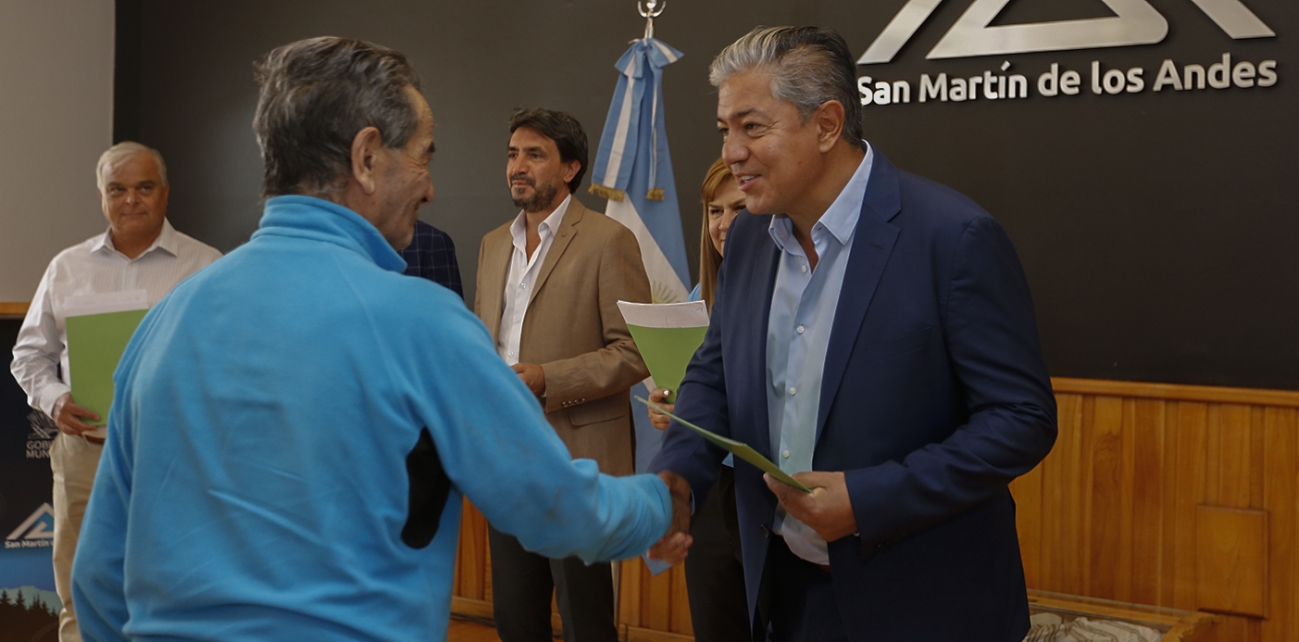 El gobernador Rolando Figueroa encabezó, este lunes, el acto de entrega de escrituras de 38 viviendas, en 11 barrios de San Martín de los Andes, ciudad que el domingo último celebró su 126 aniversario.