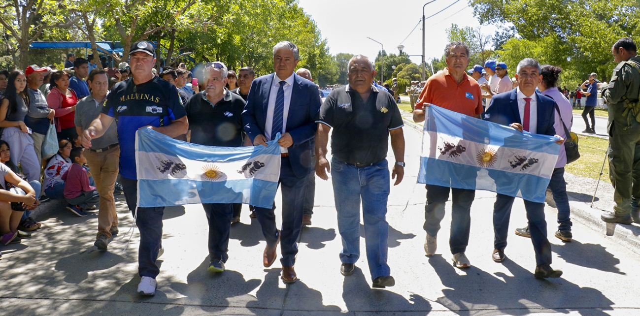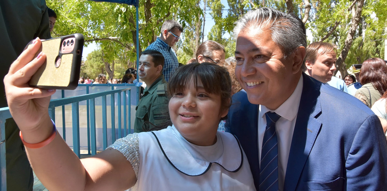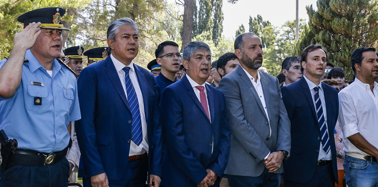 El gobernador Rolando Figueroa y el intendente Pablo Cortez encabezaron el acto por el 127º aniversario de Las Lajas, junto a los vecinos. El mandatario agradeció especialmente a todos los alumnos y docentes que aún en tiempo de vacaciones se hicieron presentes para acompañar con las banderas nacional y provincial la celebración.