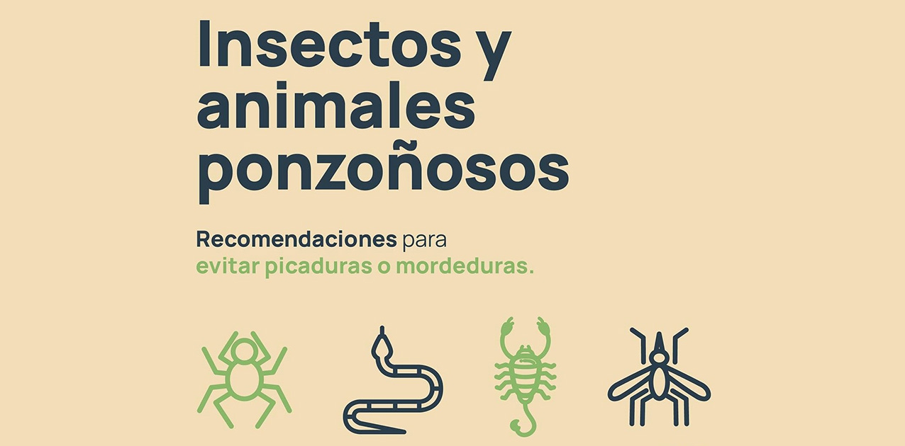 Tiempo de lectura: 1 minuto, 37 segundosPara evitar picaduras de mosquitos, arañas, alacranes o mordeduras de víboras se aconseja mantener la higiene en la vivienda y los alrededores, así como colocar mosquiteros y burletes en las aberturas, y no intentar capturarlos.