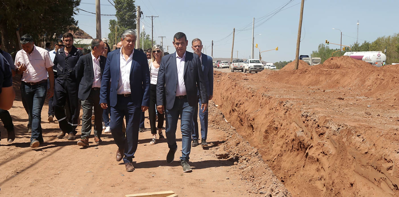 El gobernador Rolando Figueroa y el intendente de Añelo, Fernando Banderet, pusieron en marcha, este miércoles, la quinta etapa de la red cloacal de la localidad, que también es conocida como la capital de Vaca Muerta. La obra beneficia a una población estimada en 8.900 habitantes y se realizó a través de un aporte económico del gobierno provincial, el trabajo del personal municipal y aportes privados.