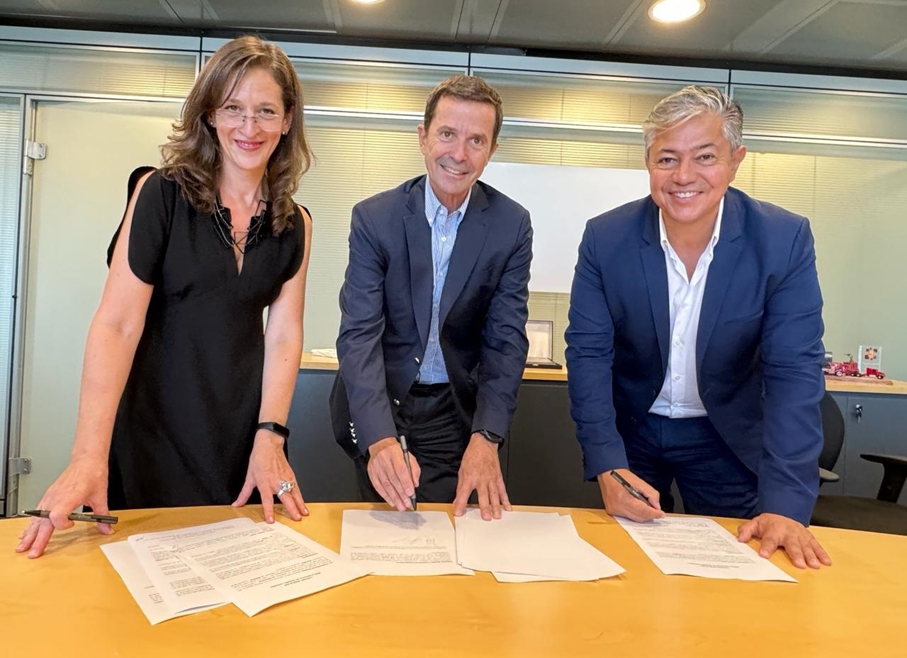 El acuerdo alcanzado entre el gobernador y los apoderados de la firma, Ricardo Markous y María Laura García, posibilitará que la empresa aporte una suma de 250 mil dólares. También participó de la firma el ministro jefe de Gabinete, Juan Luis Ousset.