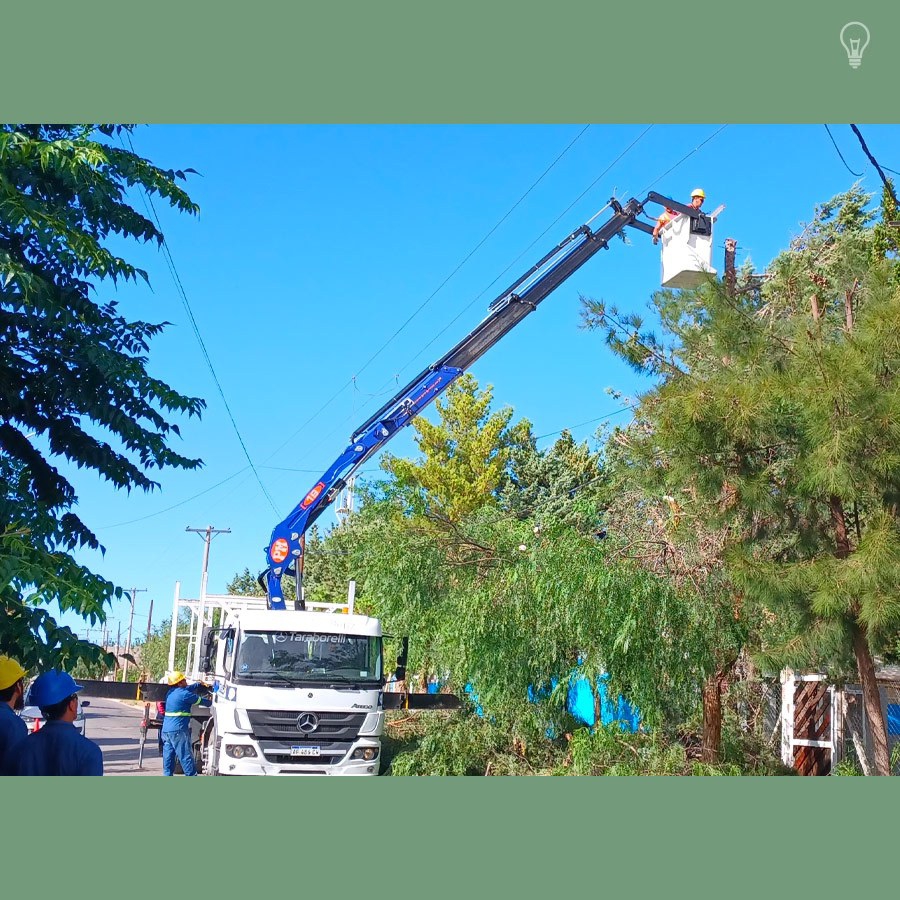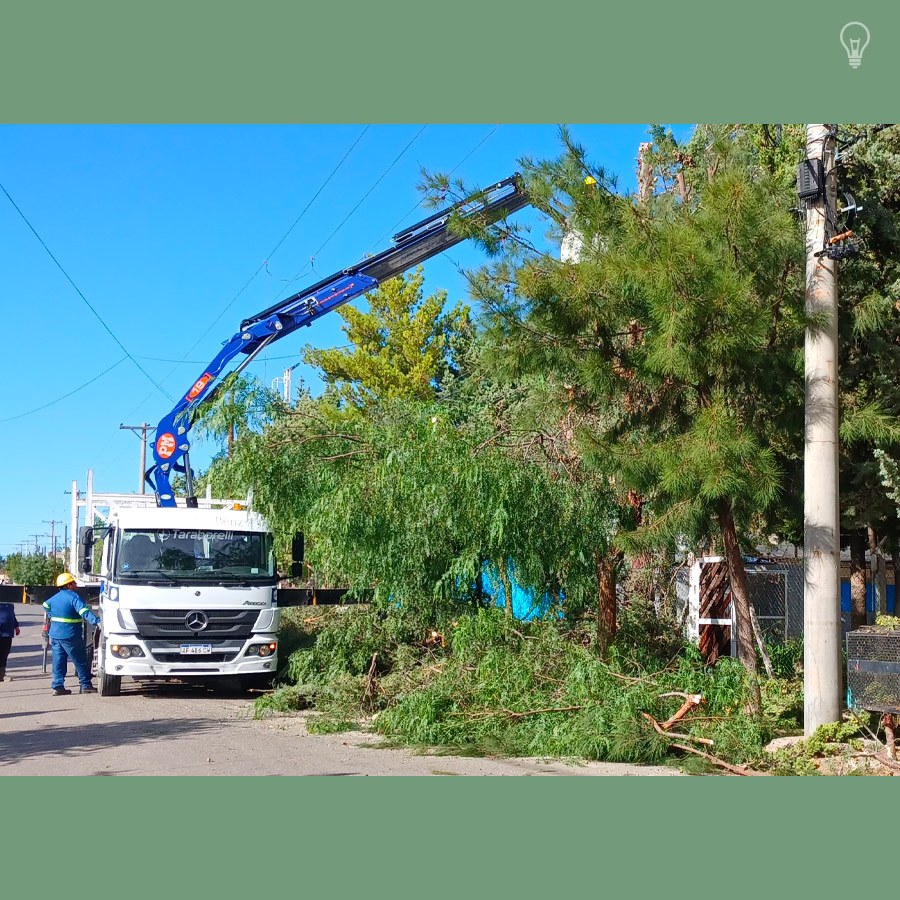 Las tareas se desarrollaron durante la mañana del miércoles 28 de febrero en las calles Lago Traful y Avenida Schreiber de la ciudad de Plaza Huincul. El crecimiento de los árboles de la zona invadía el espacio del tendido de media tensión, con posibilidades de riesgos mayores.