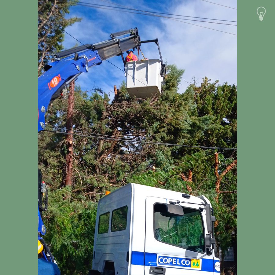 En continuidad al plan de mantenimiento de líneas de energía, personal de COPELCO trabajó en la poda de árboles en el barrio Universitario.