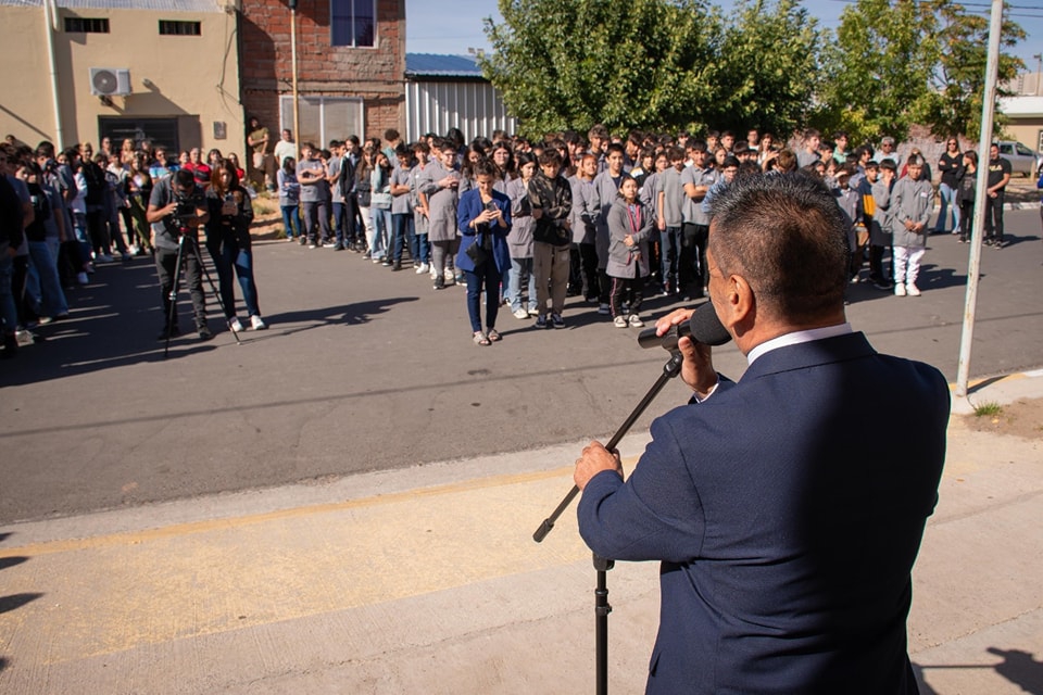 preuniversitario de Cutral Có junto a autoridades educativas. Destacó la importancia de "un sueño hecho realidad" enfocado en formar profesionales para la industria y la universidad. Y agradeció la colaboración con la Universidad Tecnológica Nacional (UTN) para la concreción de dicho sueño. Con más de 200 alumnos que