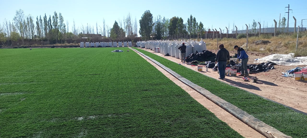 colocan el césped sintético en la cancha de veteranos Cutral co