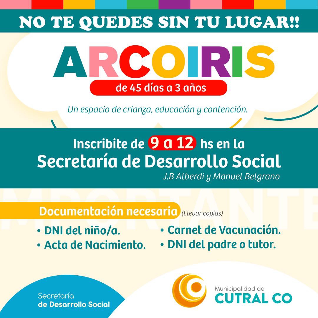 Te esperamos para completar la inscripción de 9 a 12Hs en Secretaría de Desarrollo Social Alberdi y Belgrano.