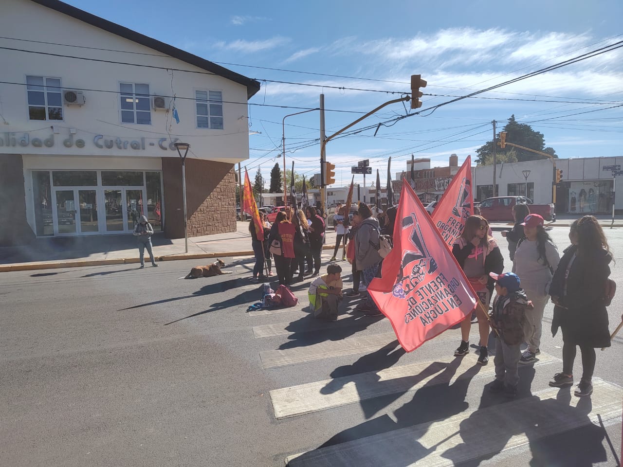 Sofía PO - Corte de la calle Elordi, frente a la municipalidad de Cutral-Có.