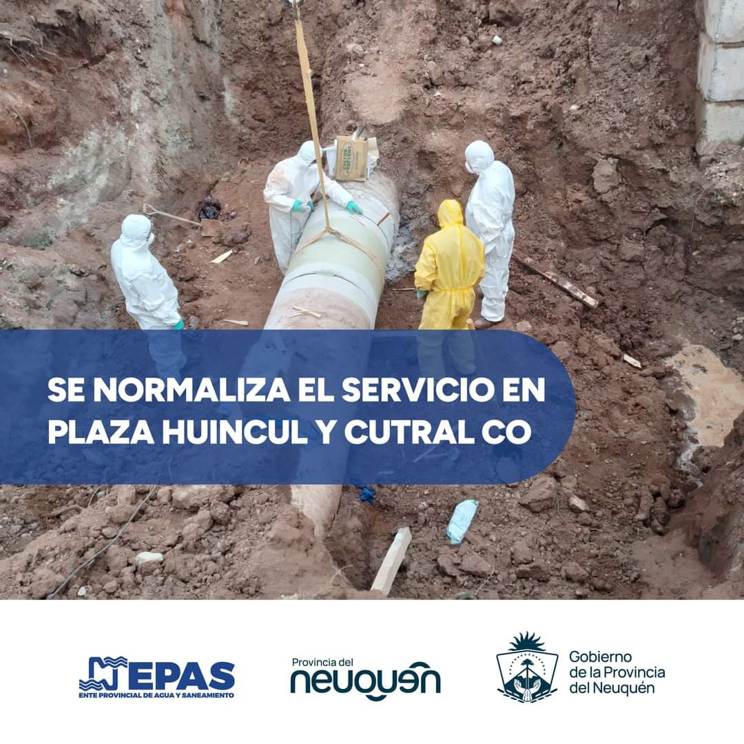 Para ejecutar la misma se utilizó maquinaria aportada por las municipalidades y cuadrillas dependientes de la Subgerencia Acueducto Cutral Co, que trabajaron durante 48 horas para reestablecer el servicio lo más rápido posible.