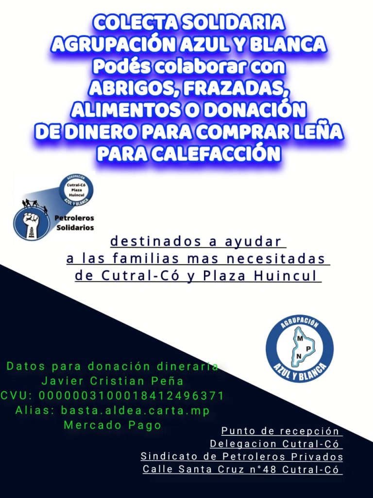 Marcelo Sosa: colecta solidaria petroleros nota. pato kein seba avila. dip paola cabeza