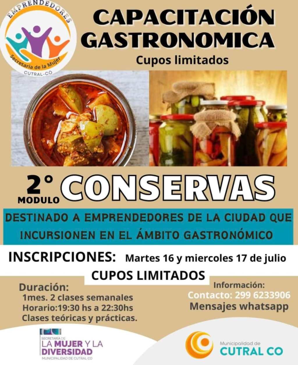 Tiempo de lectura: 19 segundosLa capacitaci贸n gastron贸mica en conservas, en su segundo m贸dulo, est谩 dirigida a los emprendedores gastron贸micos de la ciudad.