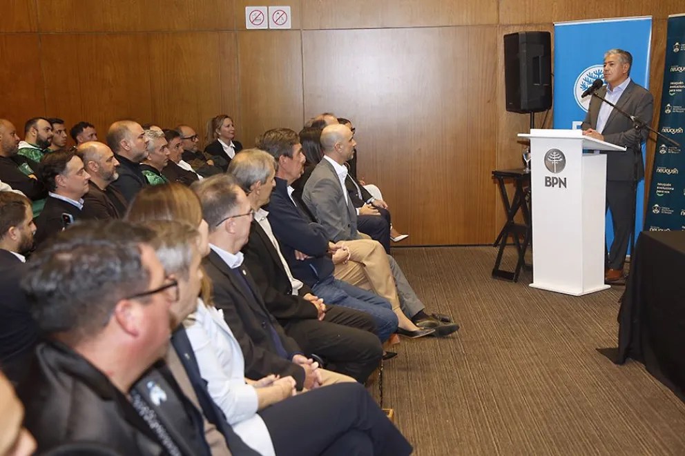 Participaron de la actividad los ministros de Jefatura de Gabinete,Juan Luis Ousset; Economía, Producción e Industria,Guillermo Koenig; la secretaria de Juventud y Deporte,María Fernanda Villone; los delegados de las regiones Confluencia,Jorge Jamut, Vaca Muerta,Milton Morales, y Comarca,Rubén García; el presidente del BPN,Gabriel Bosco; intendentes, representantes de los clubes y jugadores.