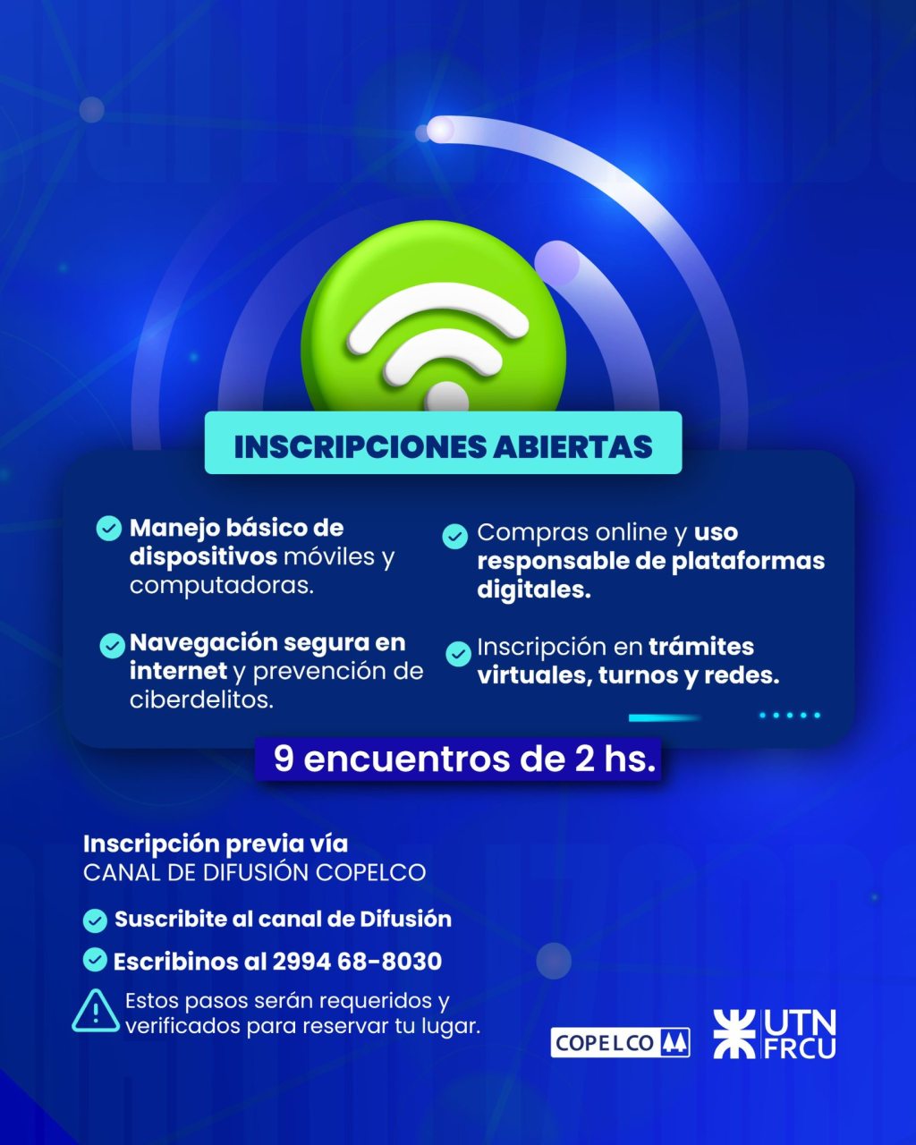 El 1º de septiembre comienza el nuevo programa de capacitación tecnológica para personas adultas de Copelco junto a la Universidad Tecnológica Nacional. Queremos que tengas las herramientas para moverte con seguridad y confianza en el mundo digital.