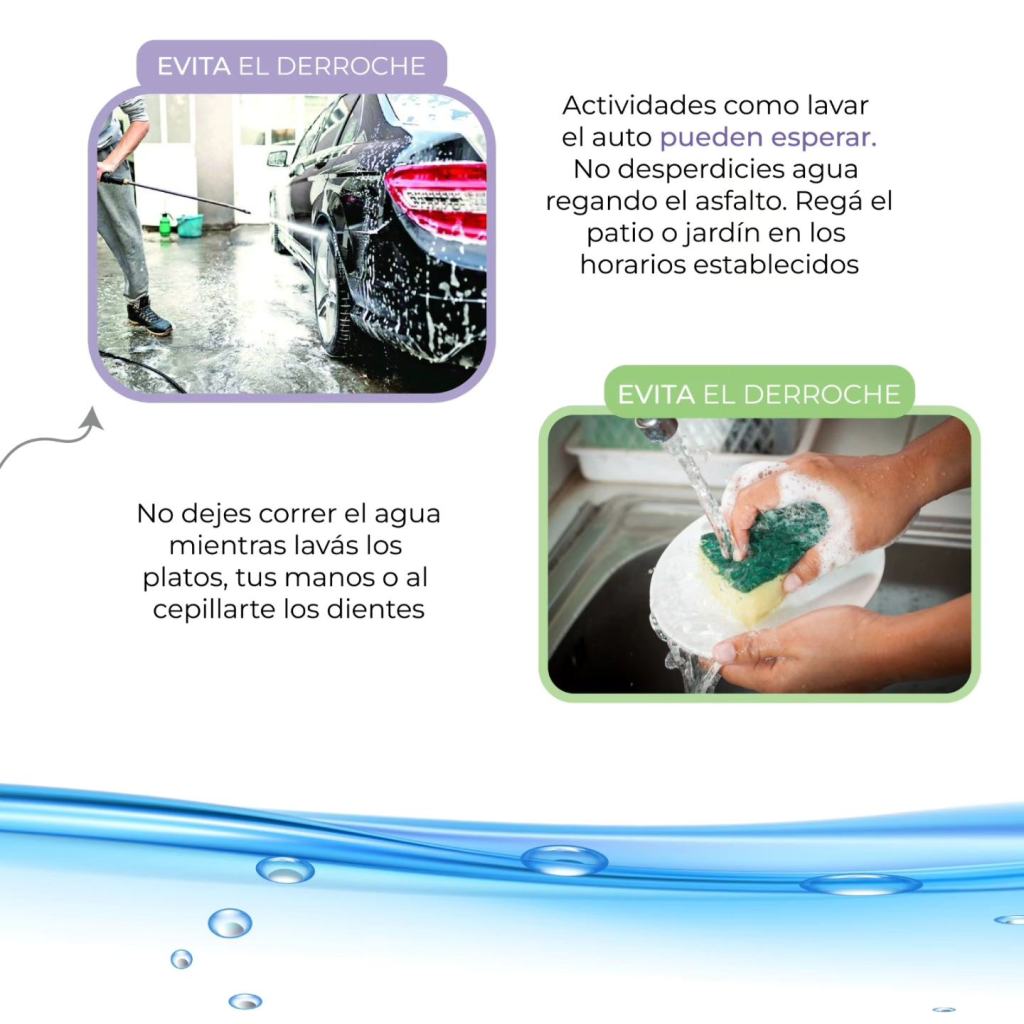 Evitá consumos innecesarios como lavar autos o regar fuera de los horarios establecidos.